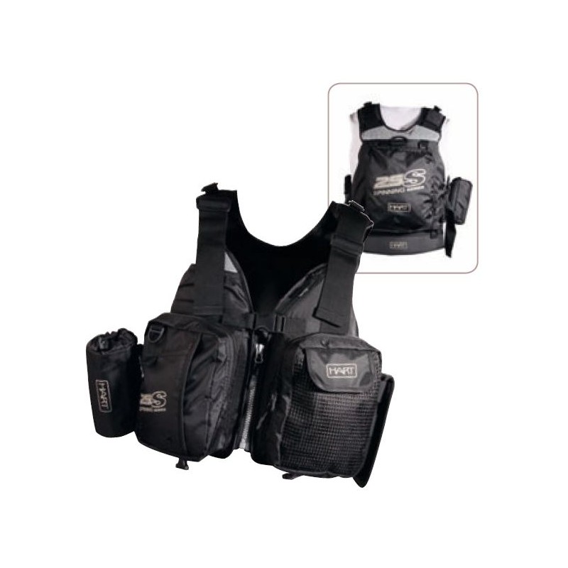 - Butxaques capdevanteres de gran capacitat per caixes d'esquers amb reixetes d'evacuació d'aigua.