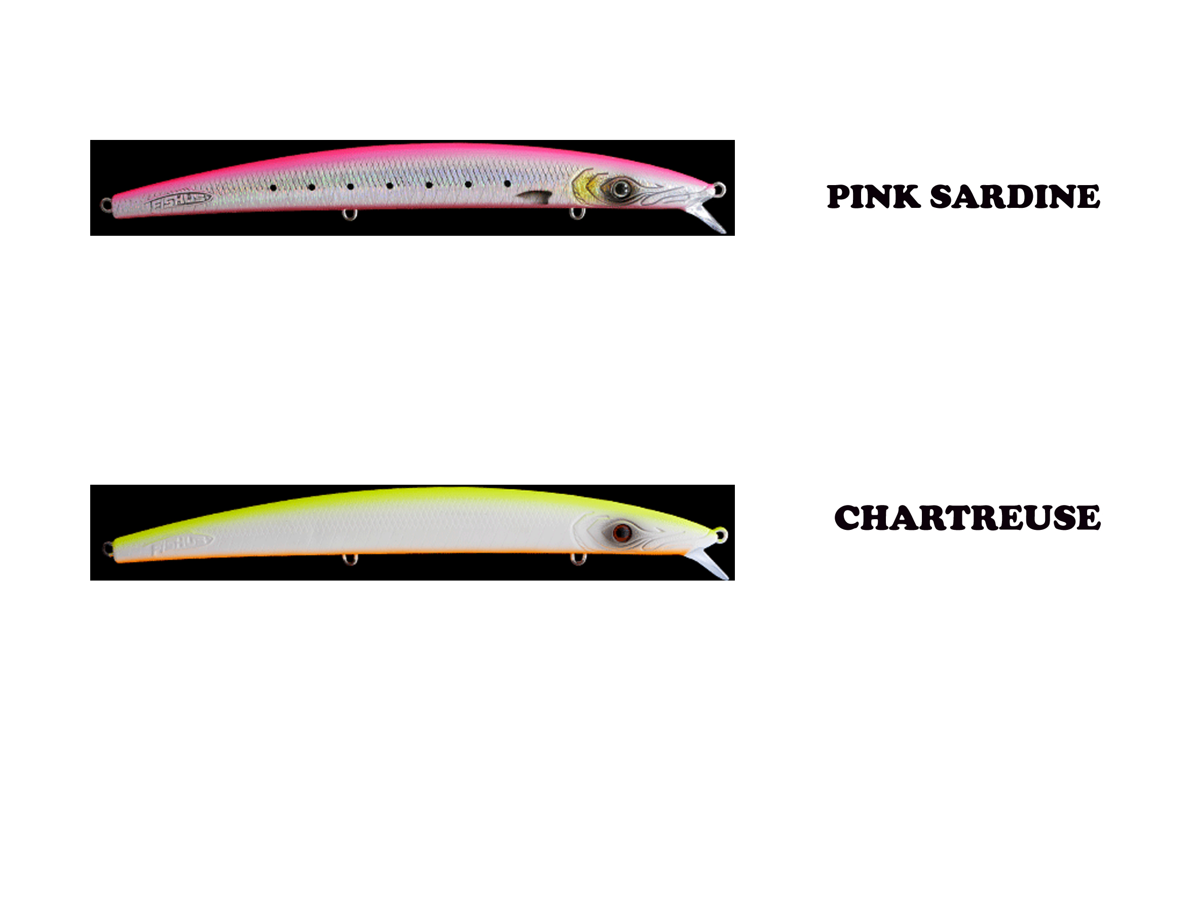 - Jerkbait dissenyat per a la pesca en aigua salada de llobarro, anjova, colomet, serviola, barracuda i altres depredadors marins. Nascut per marcar el començament d'una nova era.