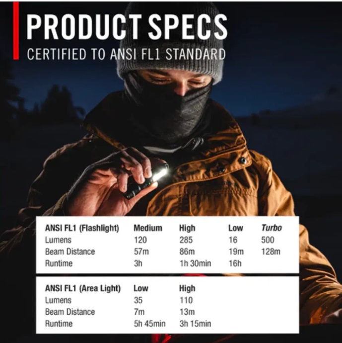 o Potent fes fins a 500 lúmens i 128 metres d'abast.