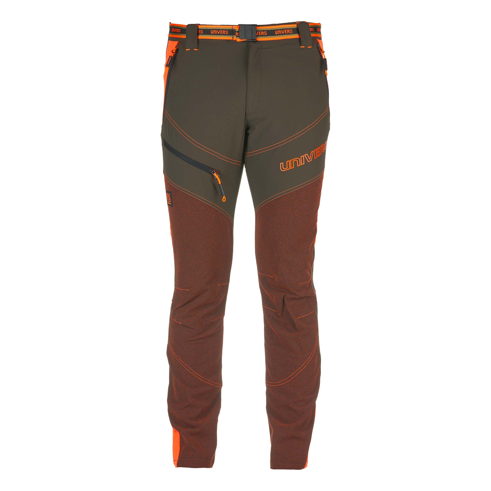 Pantalons de caça ORTLES, lleugers i funcionals, confeccionats amb una combinació de niló i teixit micro ripstop elàstic. Dues butxaques davanteres amb cremallera, una butxaca amb cremallera a la cama dreta i dues butxaques al darrere amb cremallera. Cintura elàstica i cinturó extraïble. També aptes per a senderisme i altres activitats de lleure, ja que els seus materials lleugers i altament elàstics faciliten el moviment.