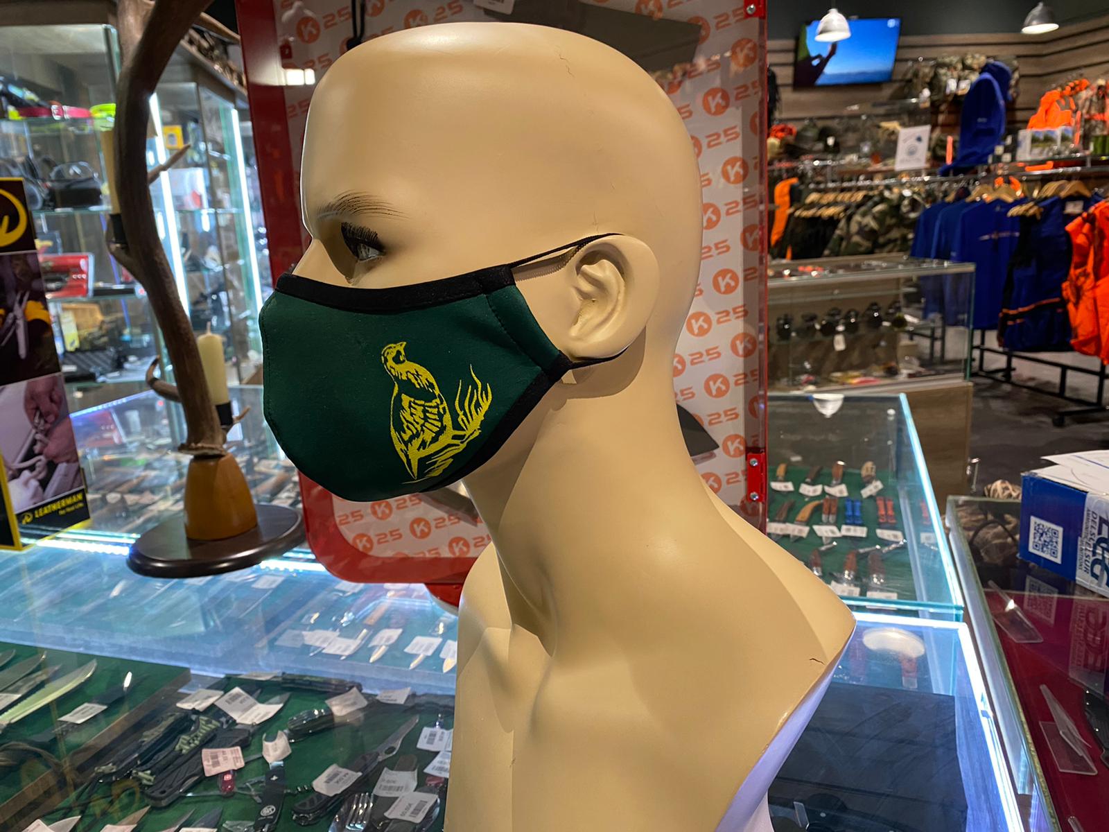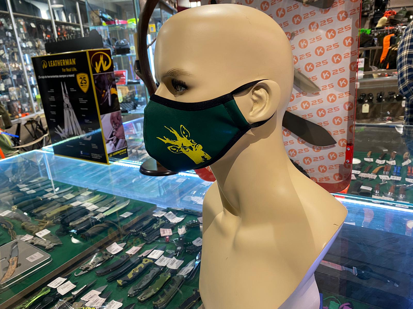 - Mascarillas de color verde homologadas con motivos de caza.