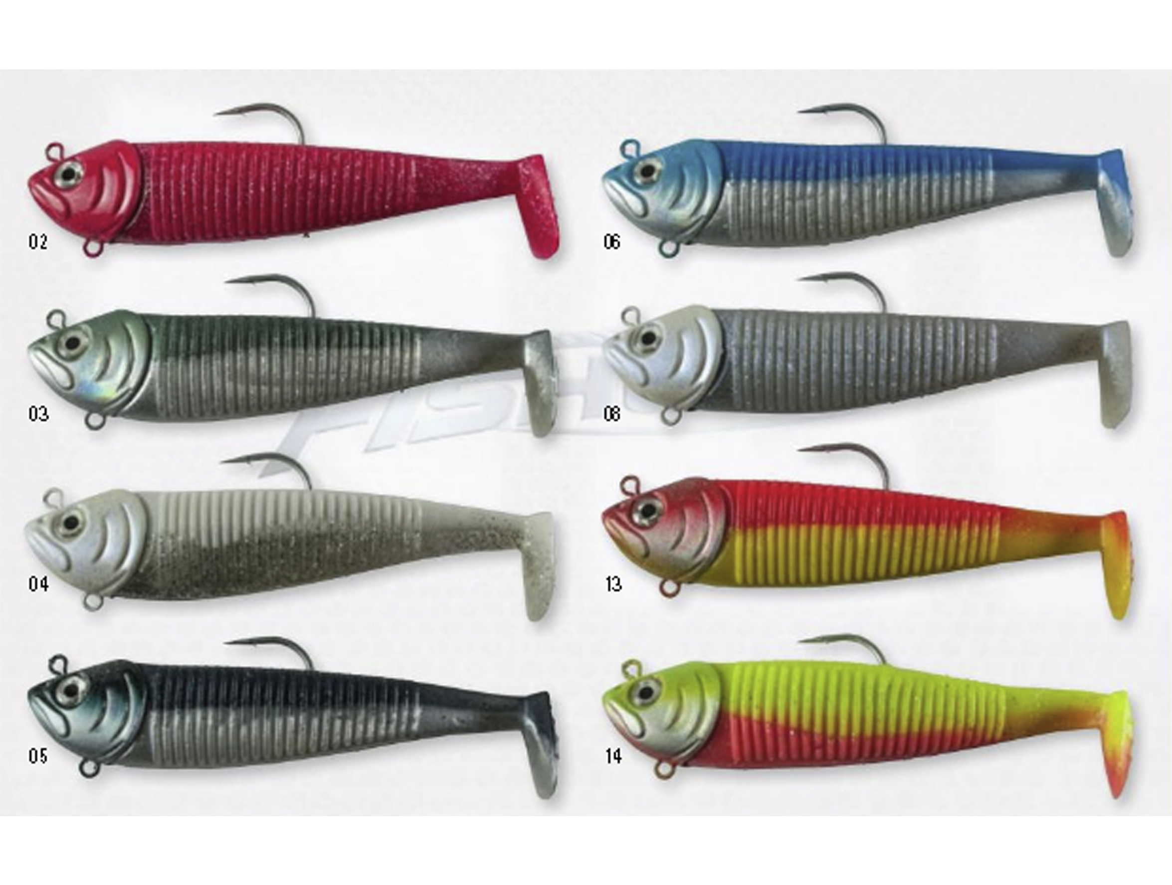 Señuelo pesado con cabeza de plomo, cuerpo de vinilo suave y cola cuadrada, que con acción de caña y / o corriente, absorbe más impacto del agua, lo que le da al señuelo un baño muy realista como si fuera una captura natural;